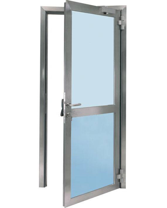 Di serie: coppia di maniglie nere con rosetta, cilindro con tre chiavi, serratura antincendio, chiudiporta aereo su entrambe le ante.