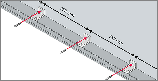 Стандартният модел с нормален щурц изисква прибл. 250 мм пространство до тавана.Моделите по поръчка за директен таванен монтаж с нисък щурц изискват поне 150 мм място до тавана.Горният панел за директен таванен монтаж е с височина 150 мм. КРИЛА
