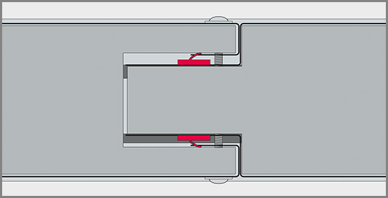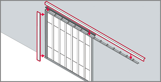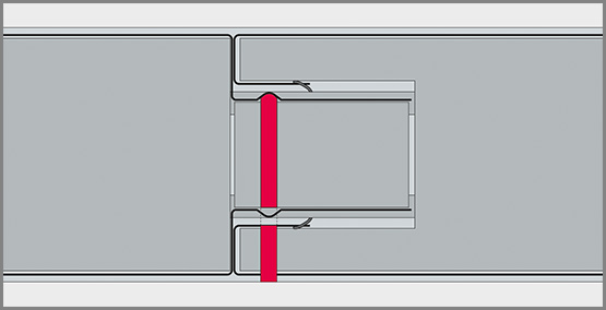 Тристранно с лабиринтни уплътнителни профили. Допълнителни уплътнения между отделните панели, за да отговори на минималните изисквания за димоустойчивост Sa. Фугите между панелите не изискват допълнително уплътняване.