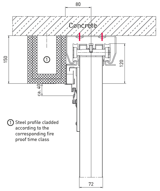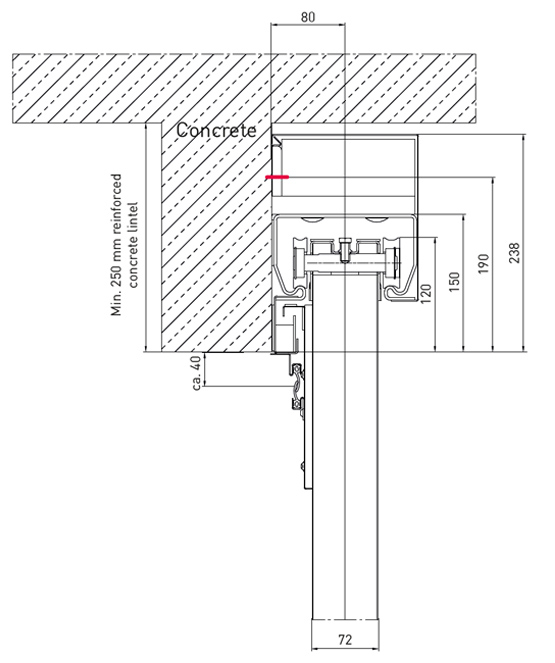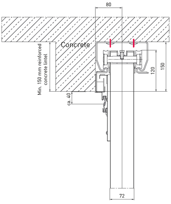 Затворена релсова система с опорна ролка на всеки панел за плавно движение на вратата; затворена релсова система с индивидуално монтирани конструкции от опорни скоби, включително хидравличен краен амортисьор; противотежести за затваряне покрити с поцинкован капак; вътрешен водач на пода; дръжка и вдлъбната в корпуса дръжка "мида" допълнително се предлагат и от неръждаема стомана.