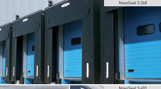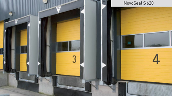 Уплътнителите за врата Novoferm с еластично връщане предпазват от течение, дъжд и вятър. Те осигуряват плътен контакт между превозното средство и сградата и предотвратяват загубата на топлина и увреждането на стоките. Вграденият отточен канал отвежда дъждовната вода странично навън.