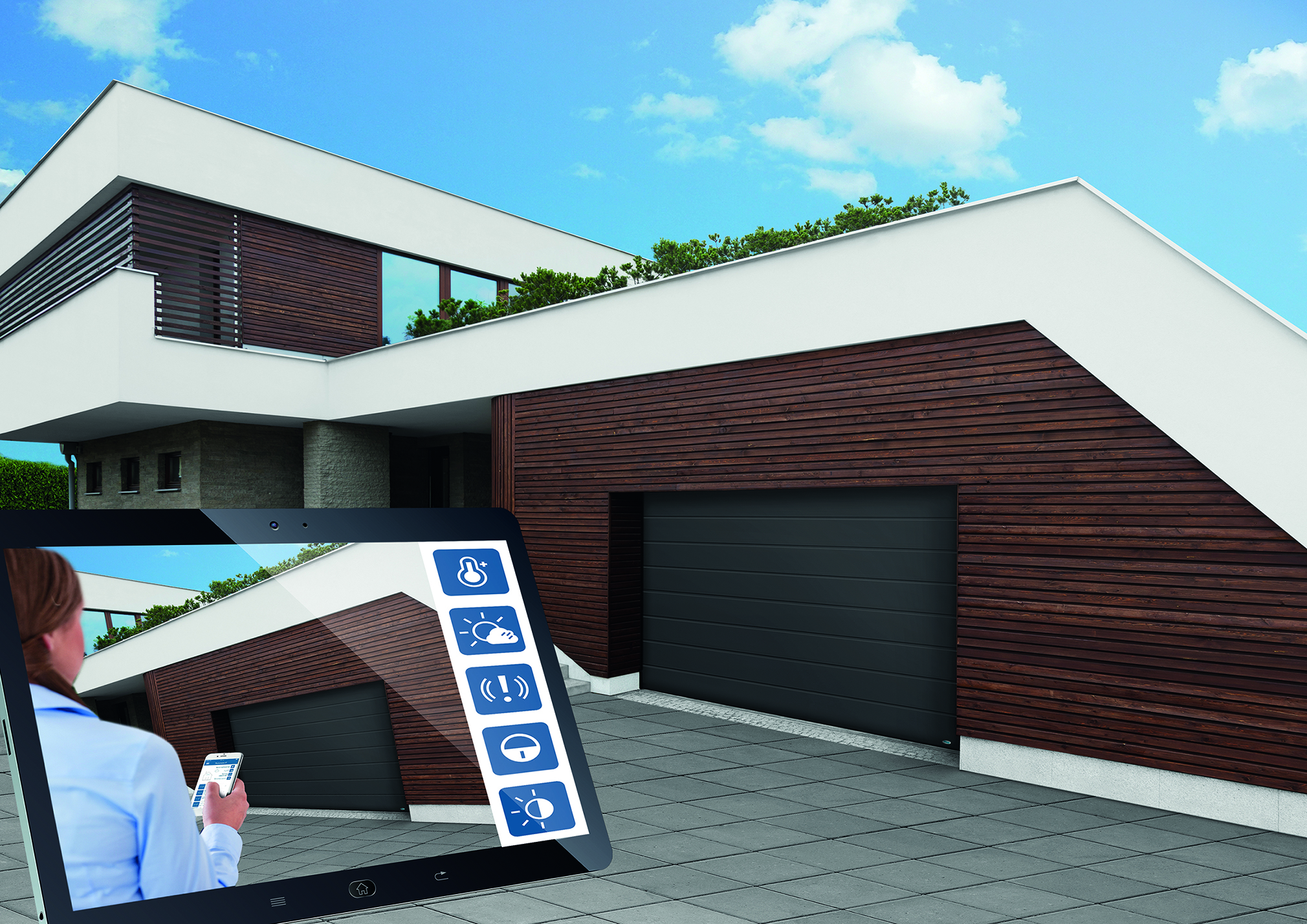 Верт, януари 2019 г. Интернет на нещата (IoT) не само ще промени продуктите и процесите в компаниите, но и обещава по-голямо удобство и сигурност в дома. Интелигентно управляваните домакински уреди, отоплителни системи, алармени системи, ролетни щори и входни врати комуникират помежду си и със собствениците на жилища, създавайки условия за интелигентен дом. Интегриран е и гаражът, а именно отваряне на гаражни вратие очевидно и естествено допълнение, особено след като водещи доставчици, като Novoferm, вече предлагат управление на гаражните врати чрез приложение. Ето защо на BAU 2019 Novoferm прави решителната крачка напред: всички по-нови отварящи се гаражни врати вече могат да бъдат интегрирани с пълния си набор от функции в централизираната система за управление чрез приложение - така всяка гаражна врата може да се управлява чрез приложението.Секционна врата от Novoferm могат да се превърнат в "по-интелигентна" част от един интелигентно свързан в мрежа дом.