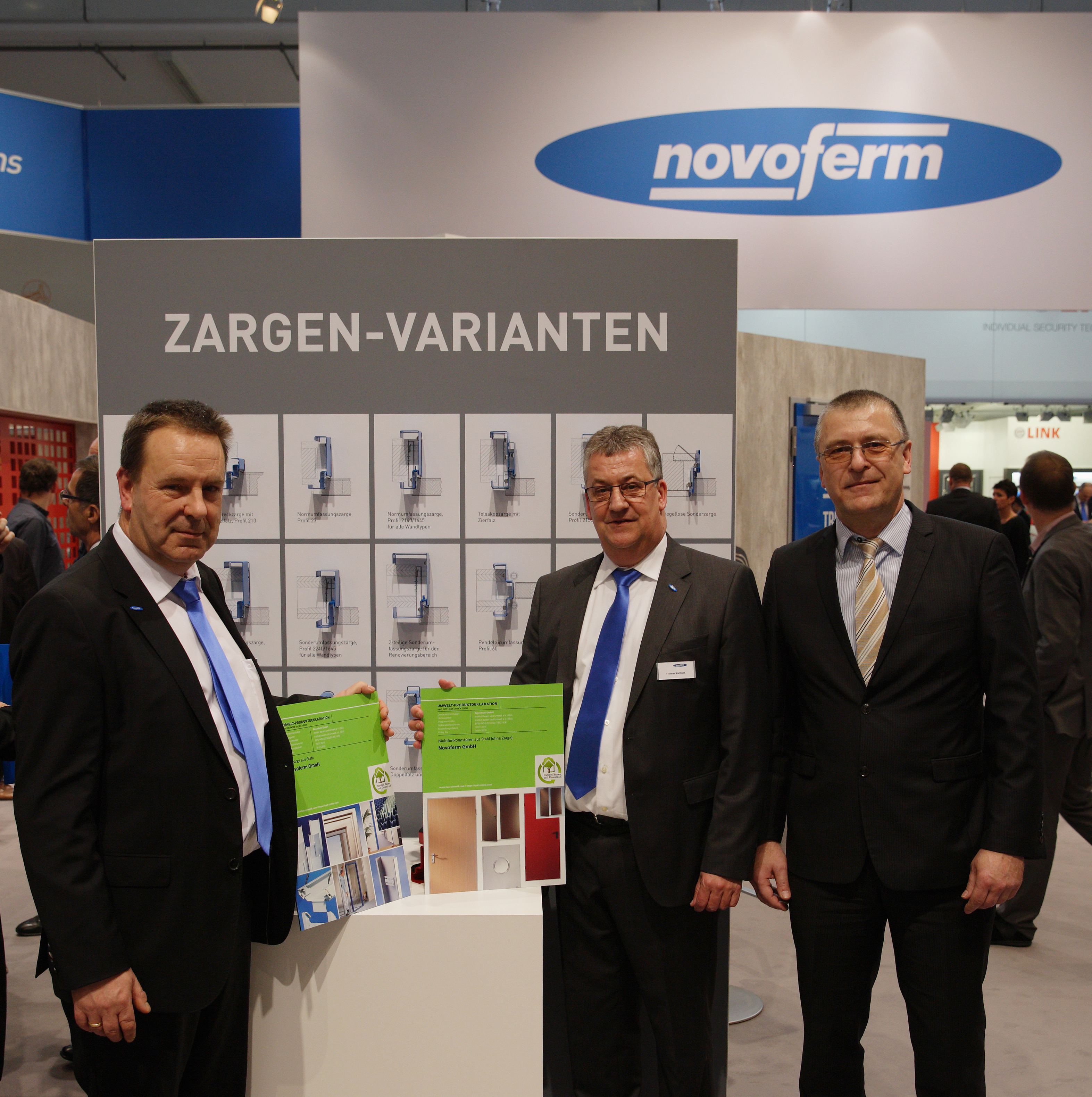 Мюнхен/Рейс, февруари 2015 г. : На международното изложение BAU в Мюнхен "Institut Bauen und Umwelt e.V." (IBU) от Берлин връчи на Novoferm, известния европейски системен доставчик на врати и портали, две важни международни екологични декларации за своите стоманени многофункционални врати и стоманена каса. Тези независимо тествани екологични сертификати, известни като EPD (Environmental Product Declarations), удостоверяват въздействието на даден продукт върху околната среда в рамките на оценката на целия му жизнен цикъл, както и чувството за отговорност на компанията по отношение на устойчивото строителство.