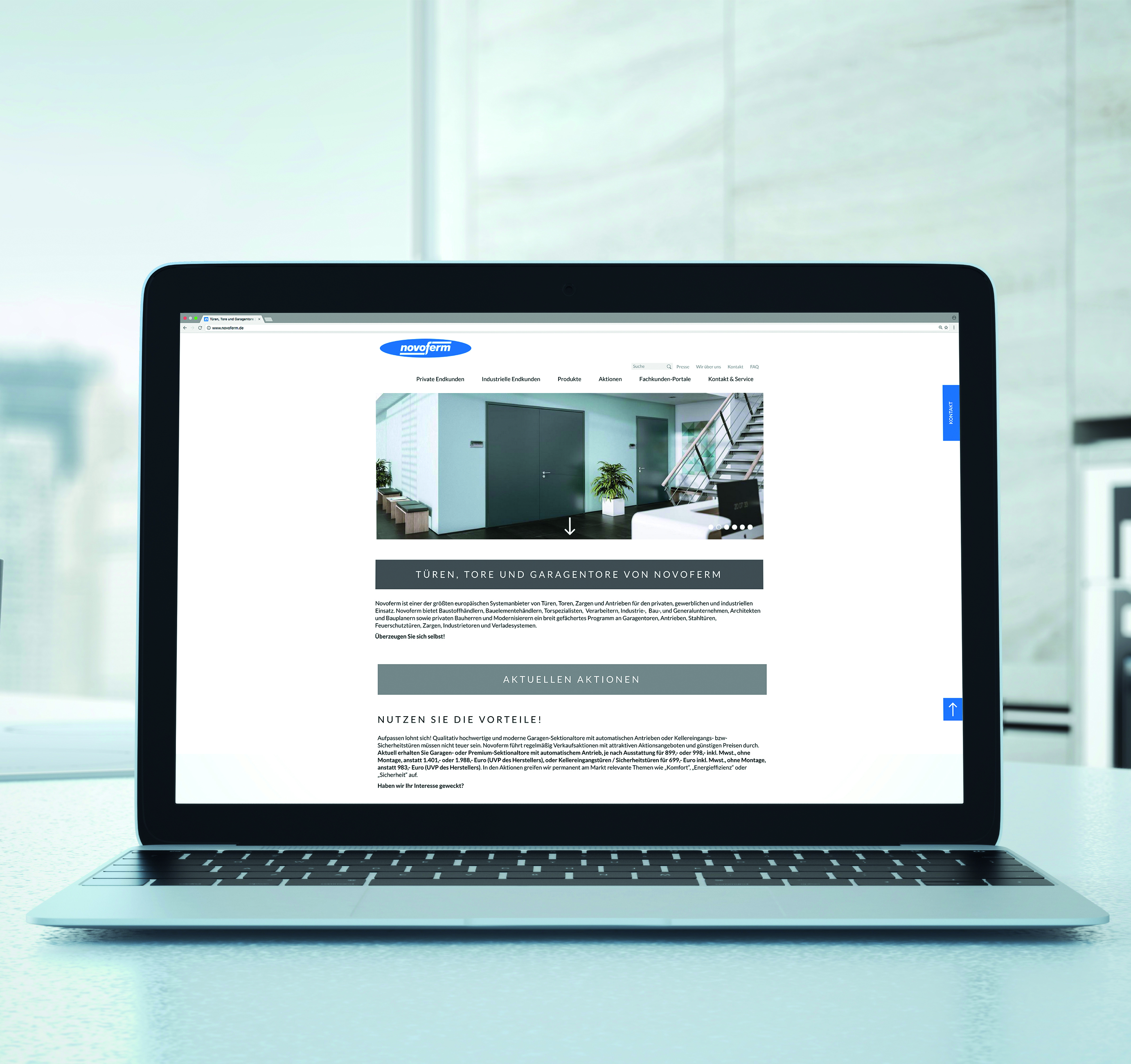 Werth, януари 2017 г. Нарастващото значение на информационните технологии във всички сектори все повече се отразява на комуникационното поведение на строителната индустрия. Докато уебсайтовете на отрасъла отдавна са предимно витрини за продукти и услуги, сега фокусът се измества към прекия контакт и диалог с клиентите. Пример за това е изцяло преработеният уебсайт на Novoferm, един от водещите европейски системни доставчици на врати, портали, рамки и задвижвания в Европа. Независимо дали става въпрос за дизайн, структура, навигация, съдържание или технология, всички компоненти на уебсайта www.novoferm.de, който беше пуснат в края на 2016 г., са насочени към очакванията и потребителското поведение на различните групи клиенти. За първи път Novoferm постави специален акцент върху директното адресиране към крайните клиенти: Частните и промишлените крайни клиенти са "обслужвани" в техните собствени области.