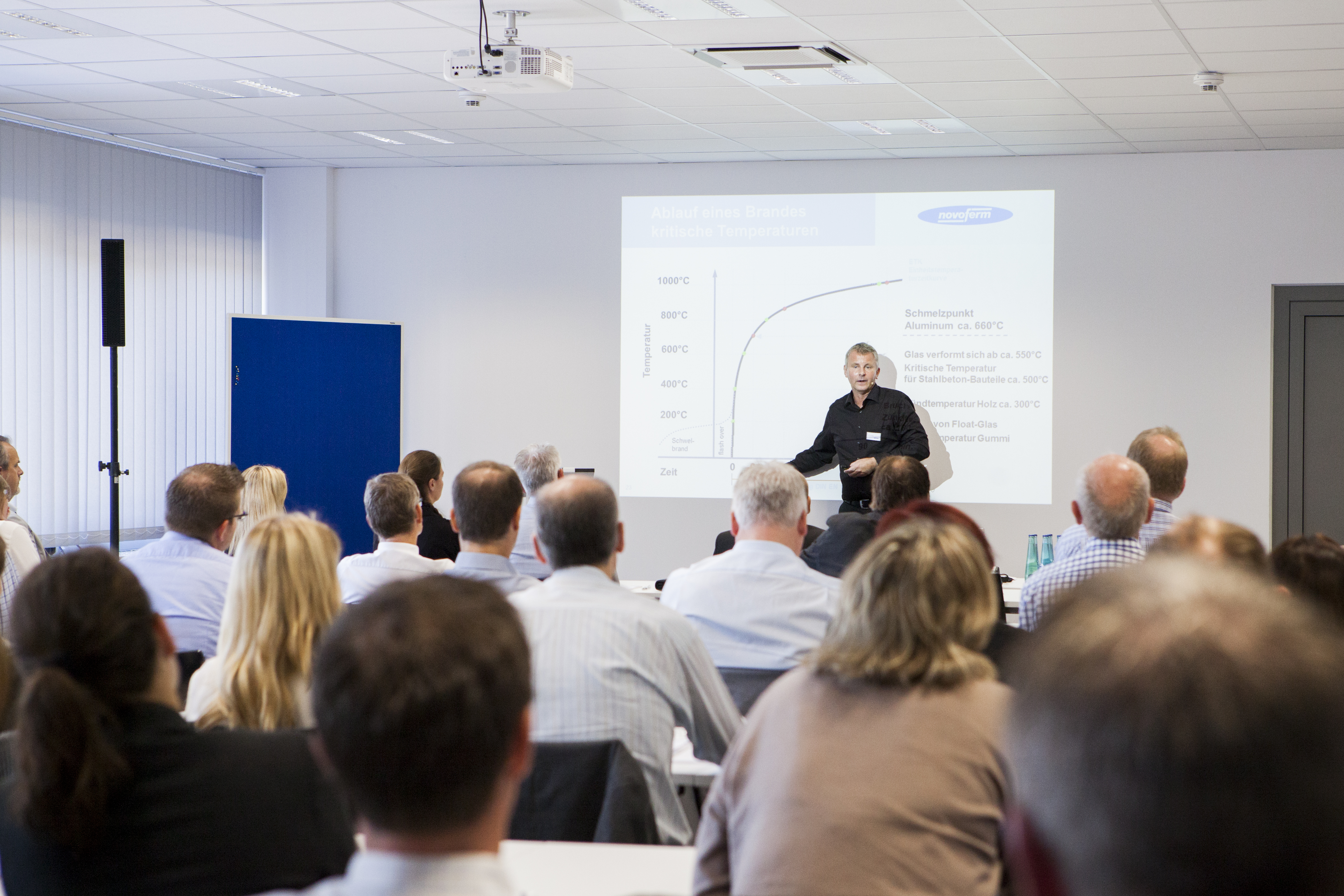 Изискванията за безопасност обаче са обект на динамично развитие, както обясни Йорн Ломан, продуктов мениджър в Novoferm, на примера на противопожарната защита. Той направи преглед на големия брой нормативни актове и разпоредби, които трябва да се вземат предвид при създаването на концепция за противопожарна защита, и обясни разликите между все още валидния DIN 4102 и новия продуктов стандарт EN 16034. С помощта на актуални данни от статистиката за противопожарната защита и примери за източници на грешки в концепциите за противопожарна защита Йорн Ломан документира колко важна е противопожарната защита за безопасността на хората и сградите.