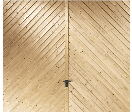 Важно е вратите от масивна дървесина да се обработят с лак преди монтажа, за да се защитят оптимално от атмосферните влияния и UV лъчите. Илюстрациите показват размер на крилото на вратата 2500 x 2125 mm.