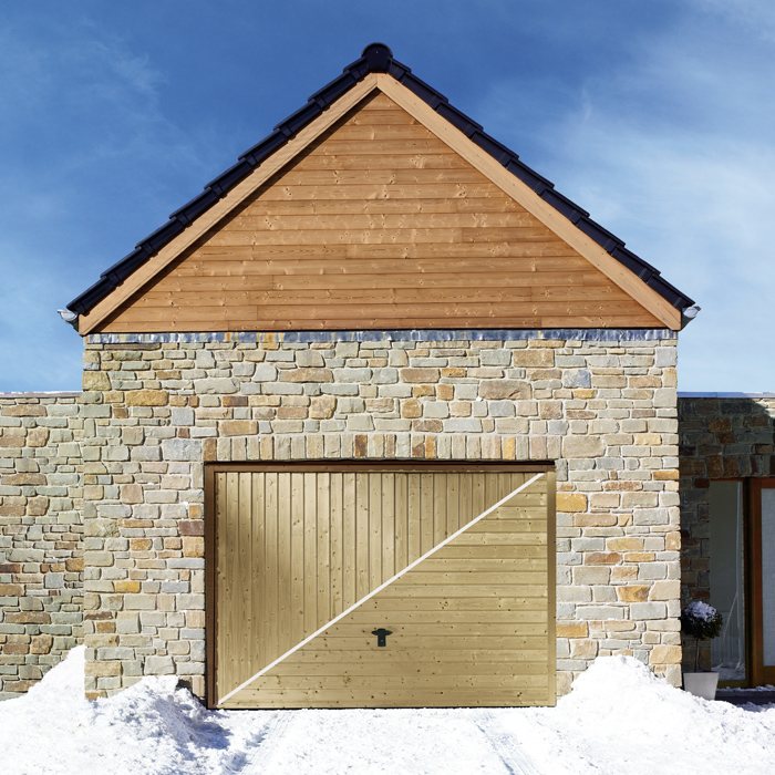 Махови гаражни врати с пълнеж на крилото от масивна дървесина