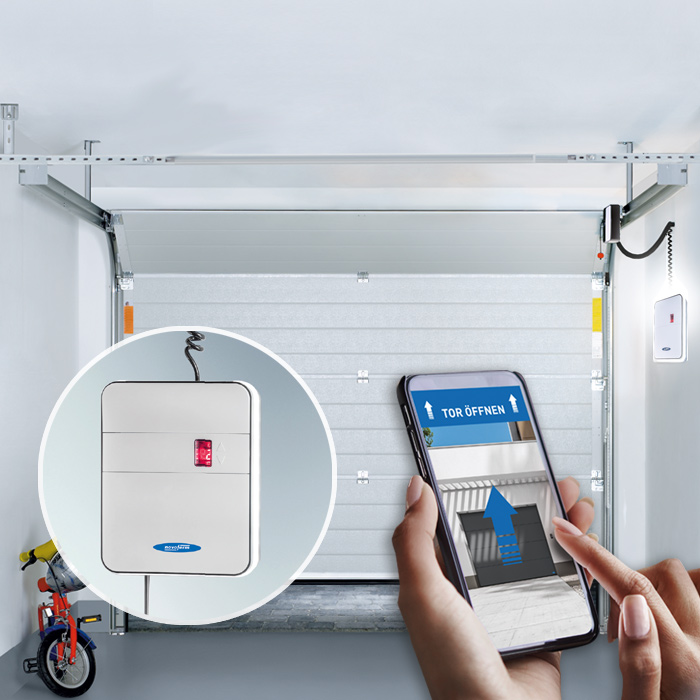 Novoferm препоръчва да се купува гаражна врата заедно със задвижване за гаражни врати, тъй като всеки, който днес купува нова гаражна врата, иска тя не само да изглежда добре, но и да се отваря лесно. С електрическото задвижване можете да повишите нивото на комфорт в гаража си само с едно натискане на бутона и да елиминирате неудобството, като използвате дистанционното управление или управлявате гаражната си врата с помощта на приложение.