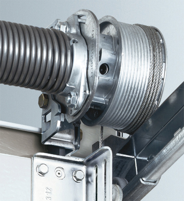 Стоманените въжета минават през защитени от намеса направляващи ролки с U-образни държачи. Това намалява изискването за височина в сравнение с монтираната в предната част торсионна пружина.