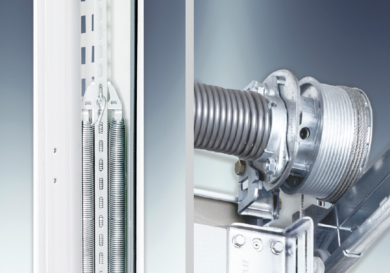 Всички по-големи размери врати са налични стандартно с нашите торсионни пружини. Това гарантира, че вратата се държи надеждно дори в случай на скъсване на пружината и може да бъде повдигнато крилото нагоре.