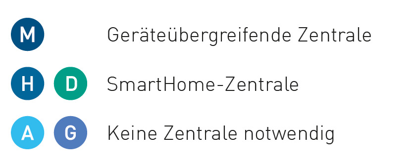 - SmartHome централа за управление от съответния съвместим доставчик (Homematic IP, Delta Dore или Mediola). За Google Home и Amazon Alexa не се изисква SmartHome централа.
