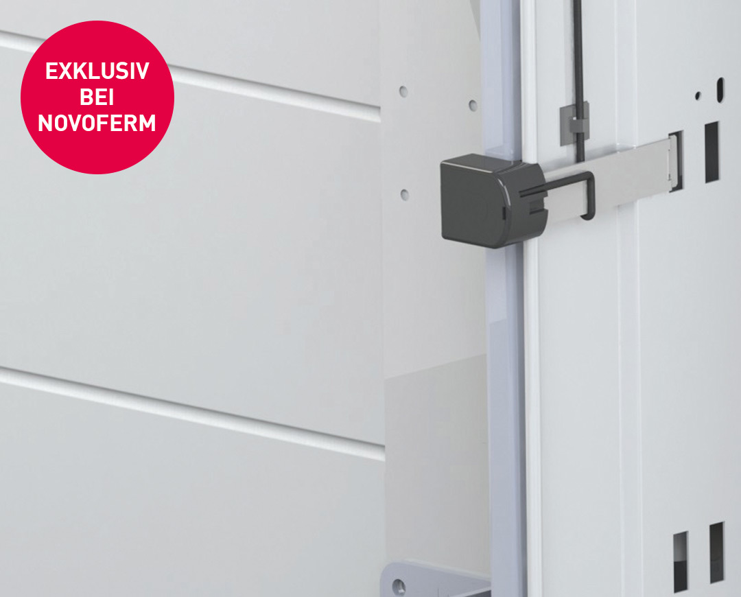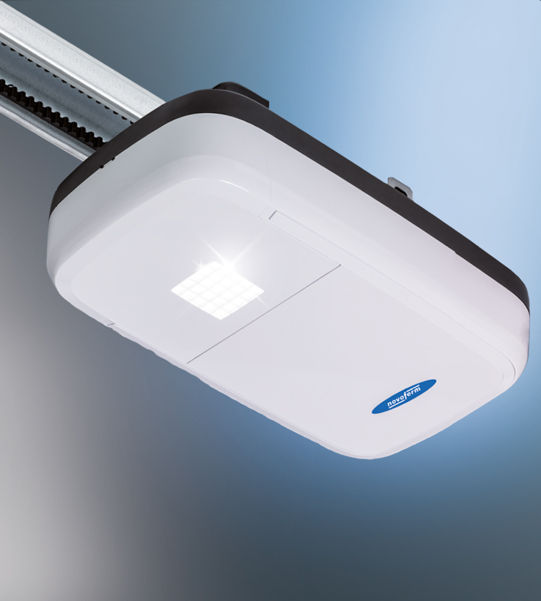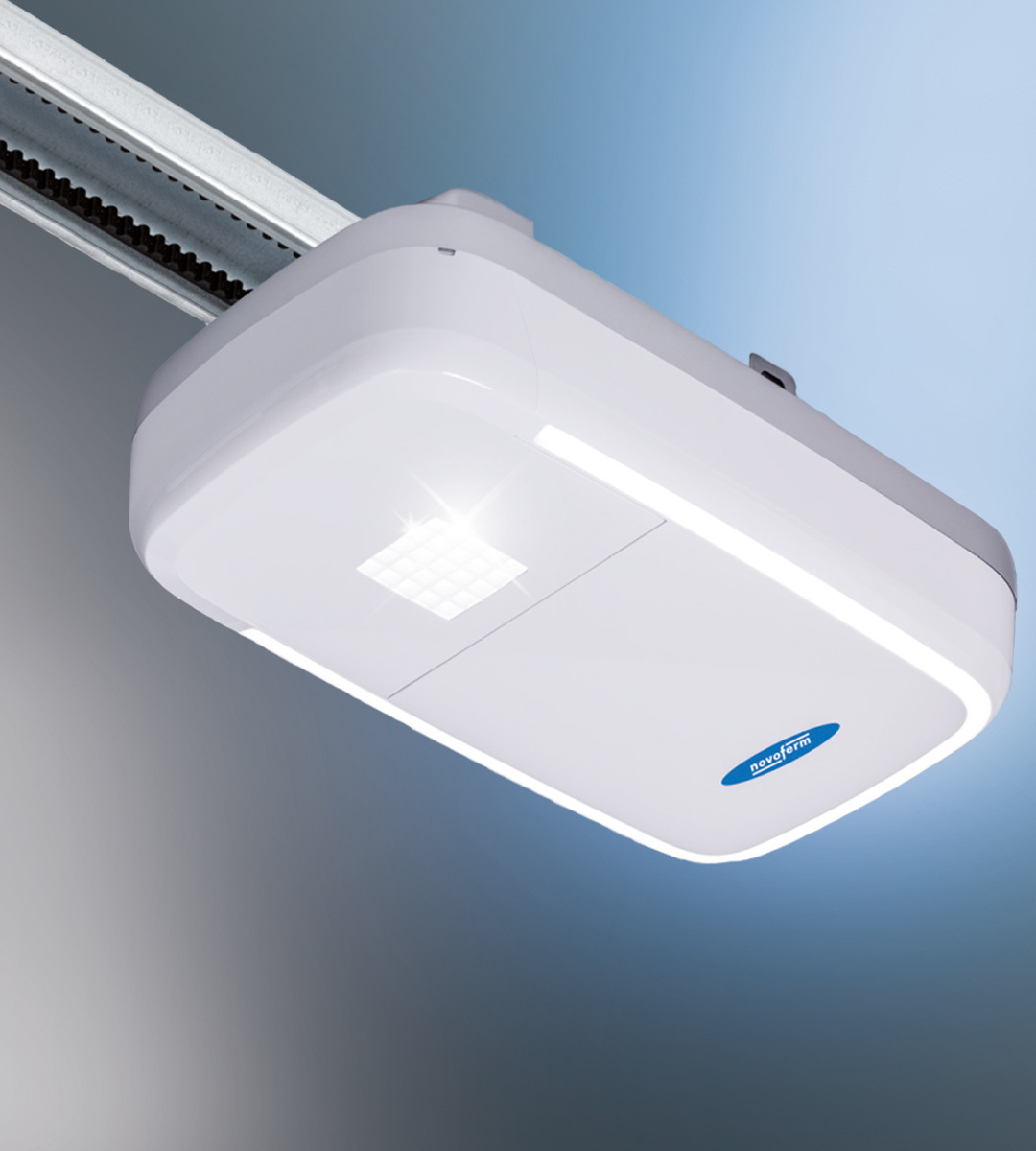 Необходимите условия за интелигентно управление на секционните гаражни врати Novoferm чрез приложение или гласова команда са: задвижване Novoferm (година на производство след 2016), новият модул Novoferm WiFi и оптосензор, който разпознава препятствия и автоматично прекъсва процеса на затваряне.