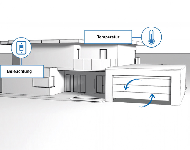 Секционните гаражни врати могат винаги да се управляват надеждно с помощта на смартфон, таблет или гласов асистент. Потребителите могат също така да се информират за състоянието на вратата, т.е. дали тя е отворена или затворена, по всяко време и независимо от местоположението си.