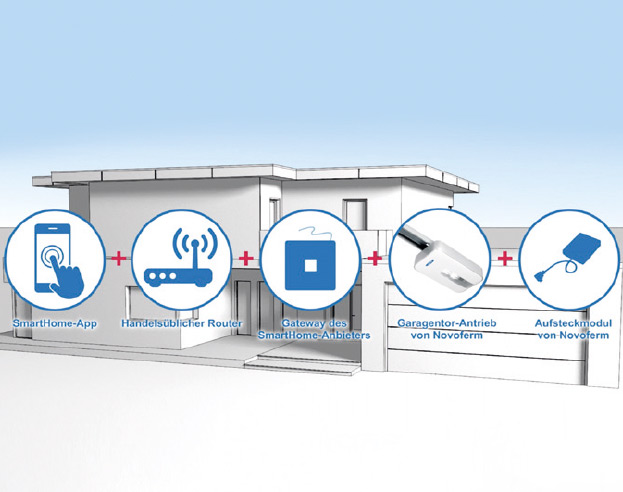 Гаражните врати Novoferm могат да се управляват чрез приложение със SmartHome системите от Homematic IP, Delta Dore, Mediola, Google Home и Amazon Alexa.