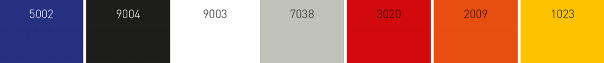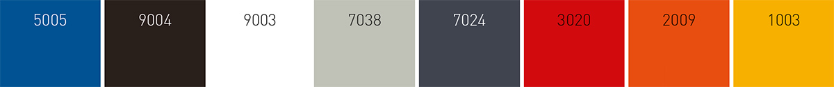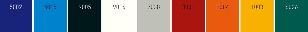Стандартно се предлага с 1,2-мм платно в следните цветове по RAL: