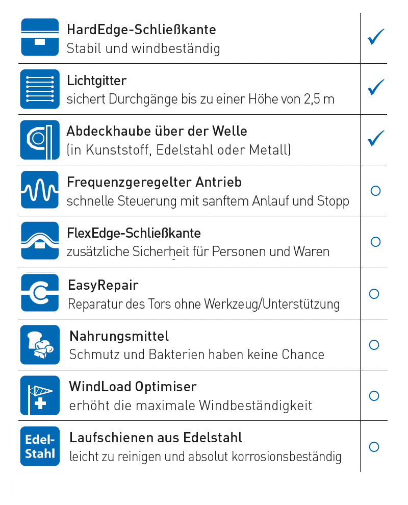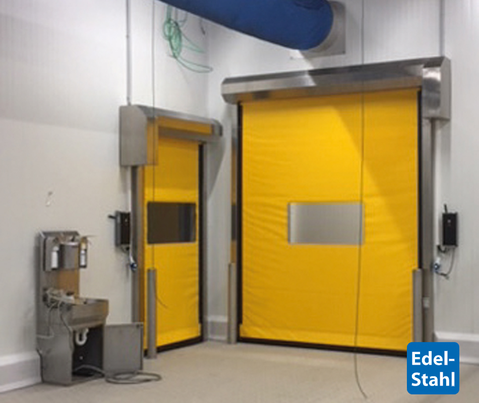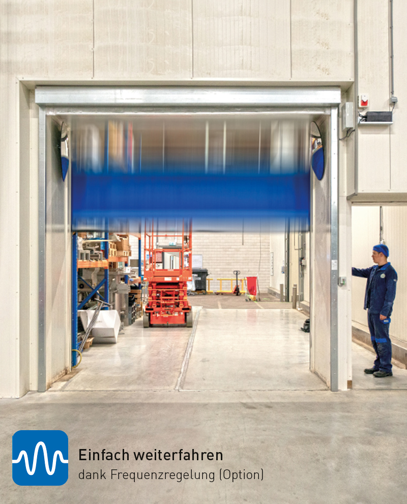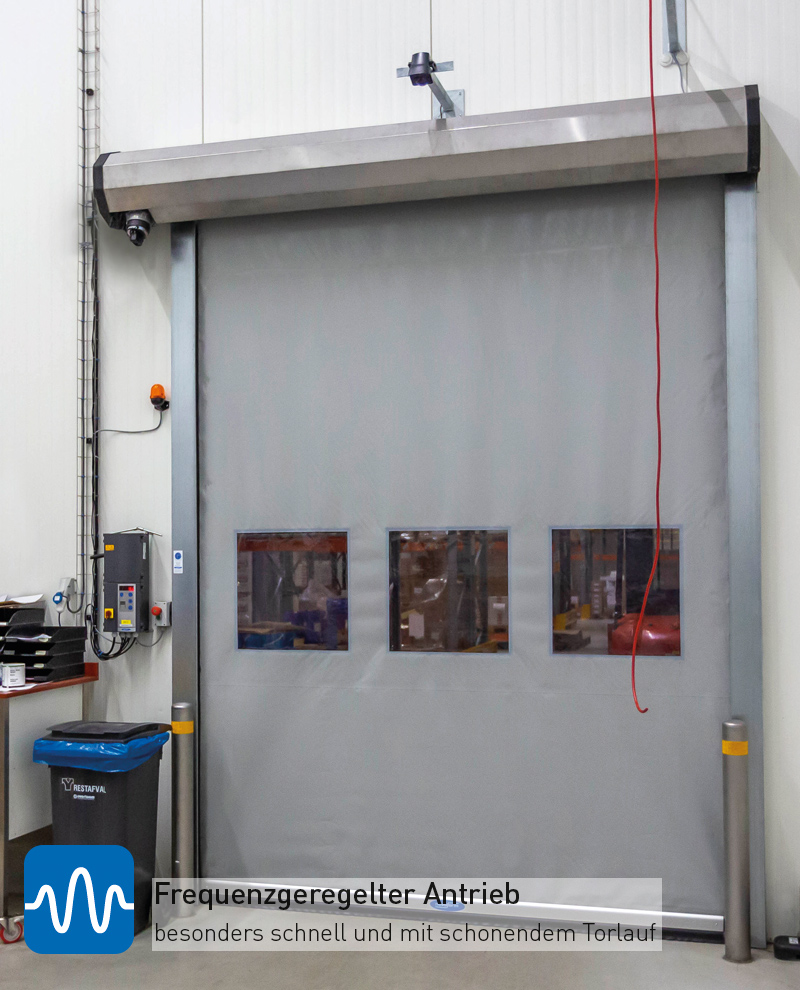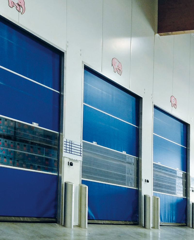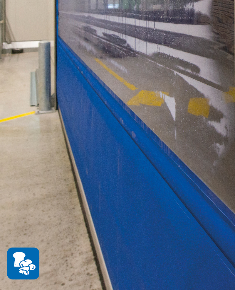 ХРАНИТЕЛНО-ВКУСОВАТА ПРОМИШЛЕНОСТ се нуждае от врати, които са бързи, надеждни и хигиенични. Бързоролетната врата Strong е идеална за тази ситуация: Бърза с допълнителното честотно управление. Надеждна благодарение на солидната основна конструкция с допълнителни укрепващи профили. Хигиенична с опция за релси от неръждаема стомана, скрити панти и устойчиви на плесени уплътнения.