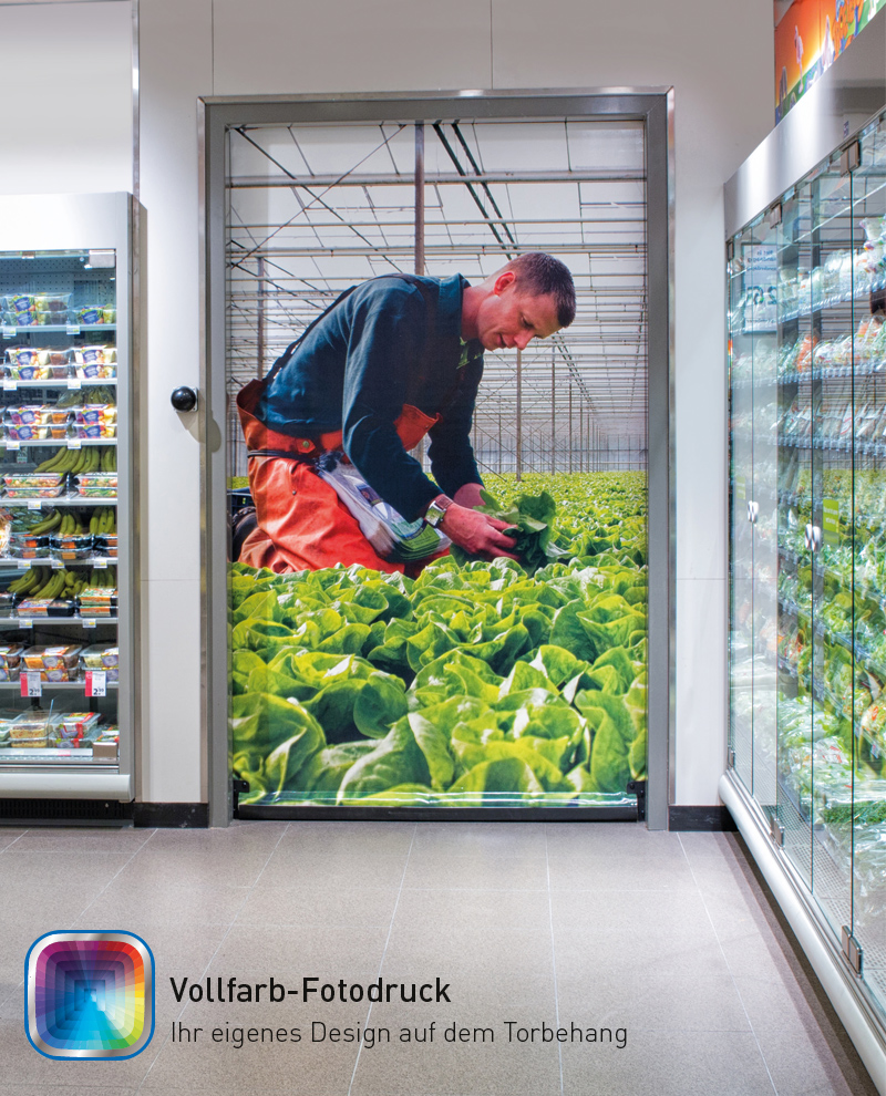 Идеален за ежедневно преминаване на хора и леки товари. Еднокомпонентното платно на вратата е изключително безшумна и може да бъде отпечатана с всеки желан принт. Бързоролетните врати Novoferm се използват в много супермаркети, тъй като са практични при употреба, спестяват много енергия и подобряват атмосферата в търговската зона с красивия си, отчетлив принт.