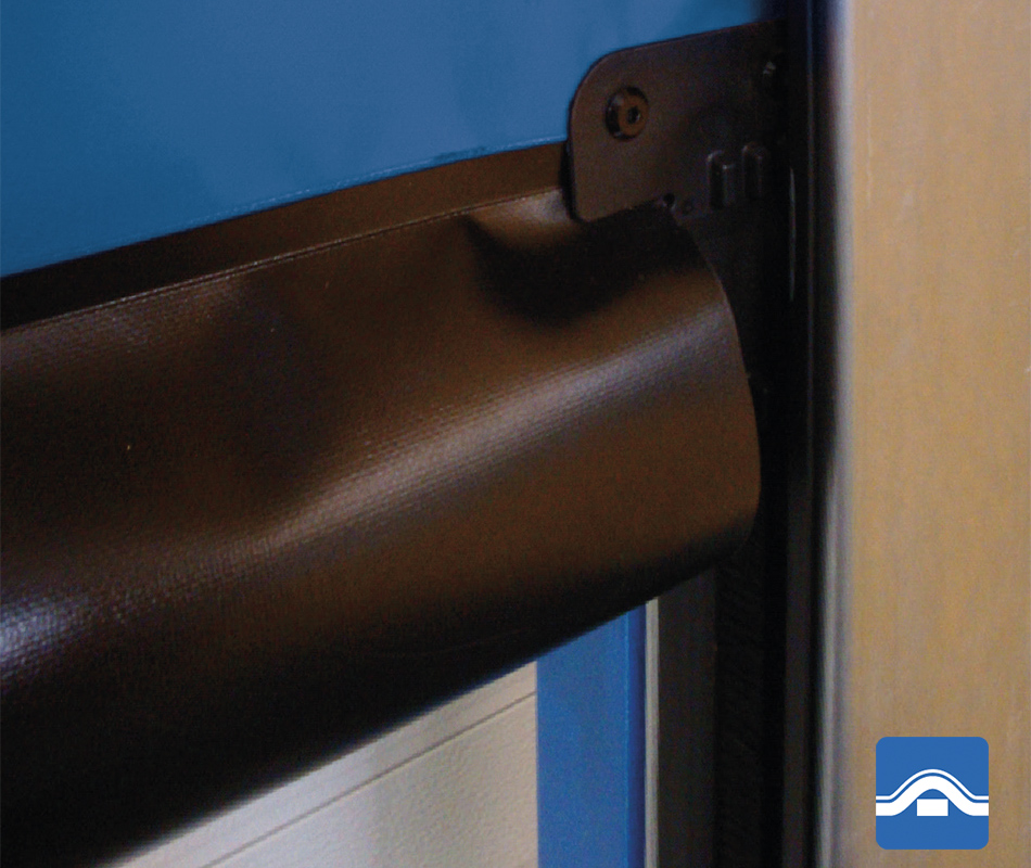 - УСТОЙЧИВОСТ: стоманени направляващи релси насочват завесата на вратата, изработена от подсилена с полиестер пластмасова материя