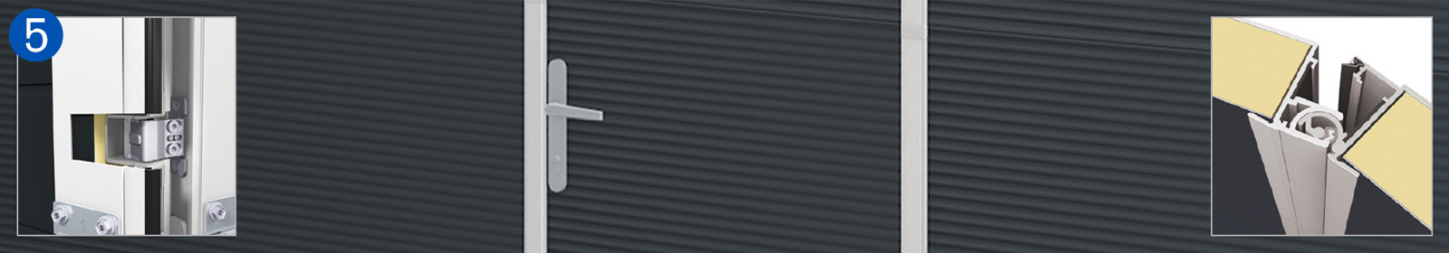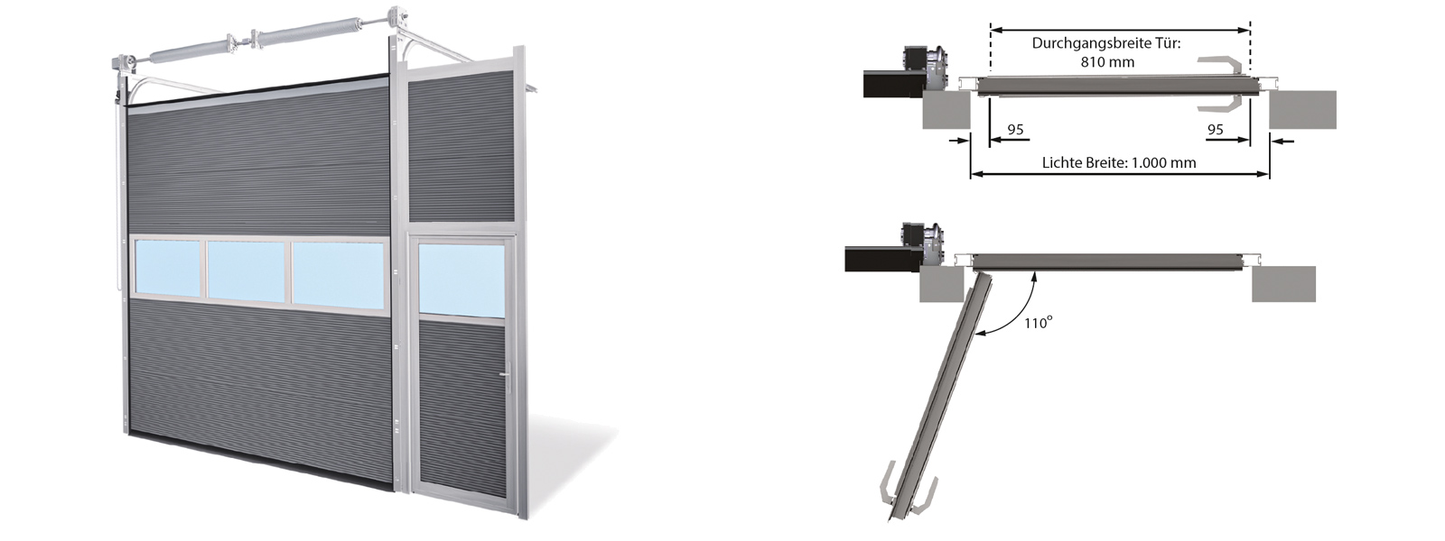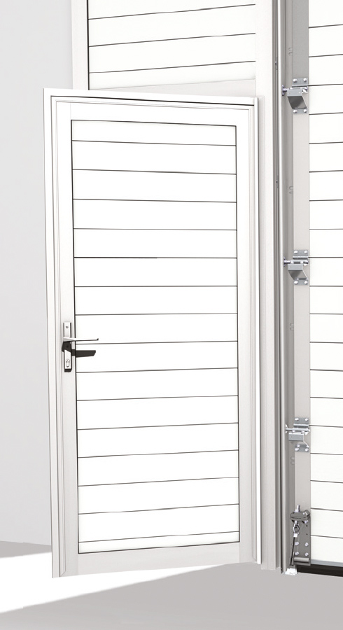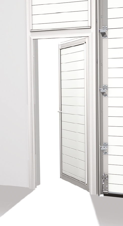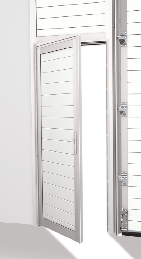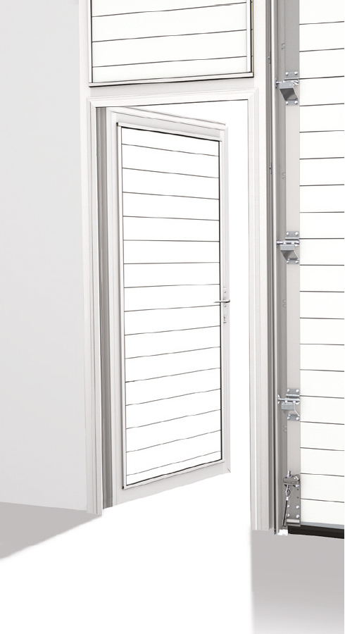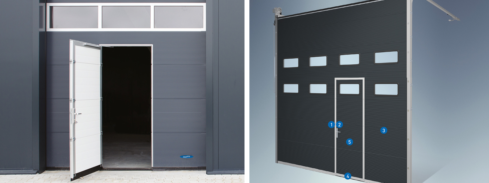 на хора и стоки, което подобрява сигурността, увеличава удобството за потребителя. Съседната врата се монтира на фасадата на сградата до секционната врата. Тя е визуално идентична със секционната врата, придавайки на архитектурния дизайн атрактивен цялостен външен вид.