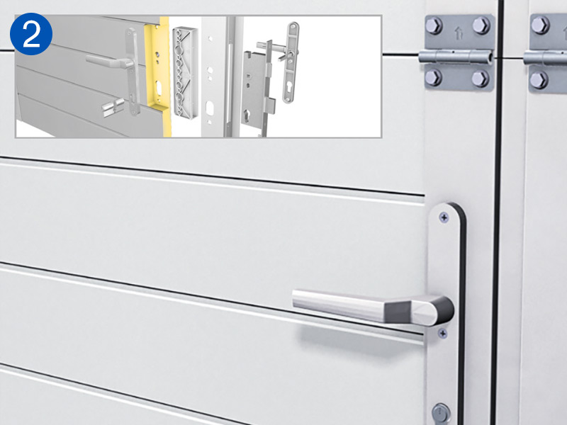 Novoferm предлага и възможност за интегриране на проходна врата в секционната врата. Нашите проходни врати отговарят на най-високите изисквания както за външен вид, така и за сигурност. Те имат интелигентна система за окачване на панти, перфектно подравнена заключваща система със стабилизиращи шипове, вграден магнитен контактор* и водеща релса за затваряне на врата като стандарт.