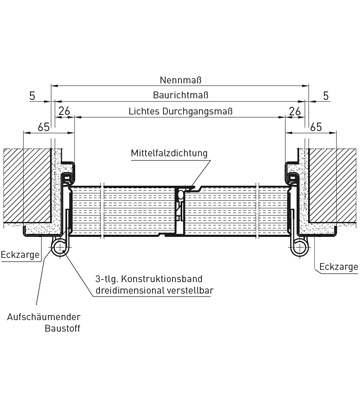 При тази серия врати можете да избирате от много бързи, лесни и чисти методи за монтаж и възможности за запълване на касата (винтов монтаж, запълване с пожарозащитна пяна, насипна минерална вата, ....).