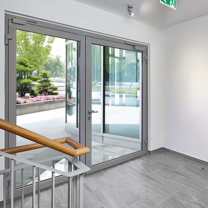 - Може да се монтира горен автомат за врата, електрически насрещник или дори антипаник функция, в съответствие с DIN EN 179 или DIN EN 1125.