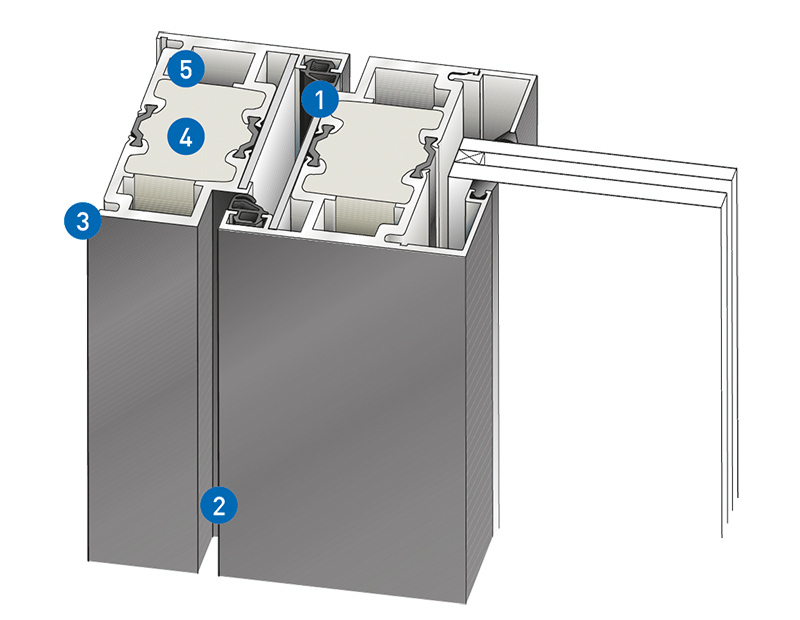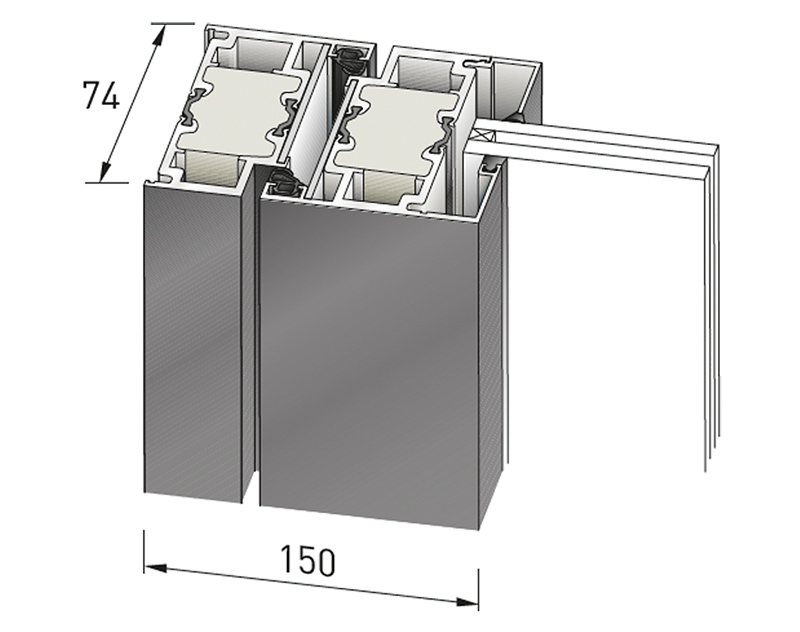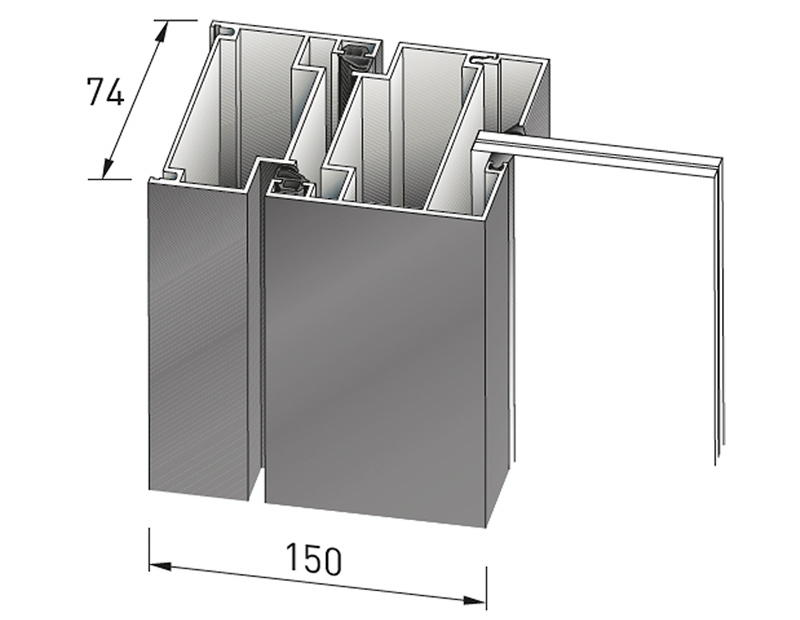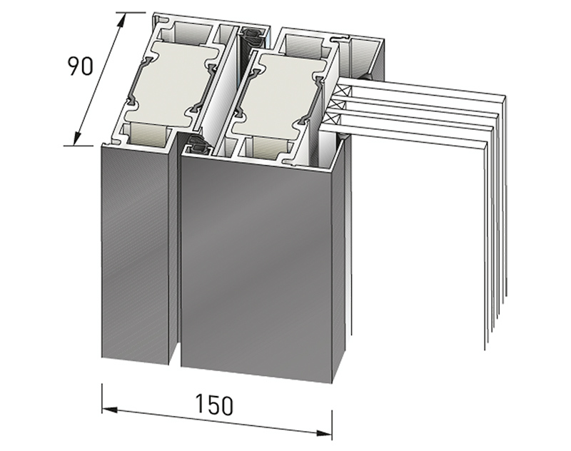 Стабилна комбинация от рамка и крило с 2 мм дебелина на стената. Профилите на крилото могат да бъдат оборудвани с плъзгащи се изолационни планки за намаляване на биметалния ефект.