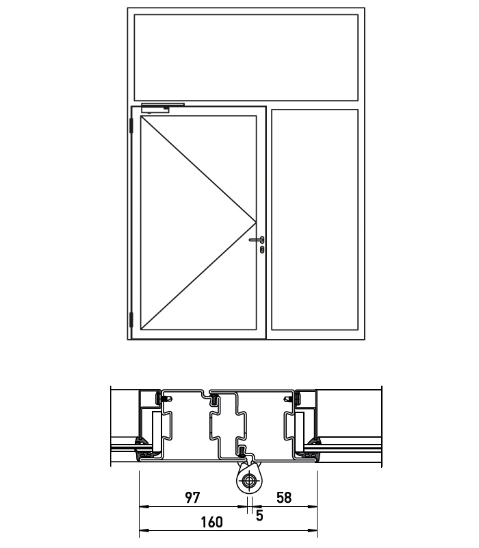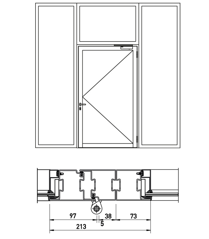 Свързани с врата, възможно е и самостоятелно, по избор със скосяване или Т-образни връзки. Рамковите профили трябва да са разположени без прекъсване по цялата височина на фиксираното остъкление.