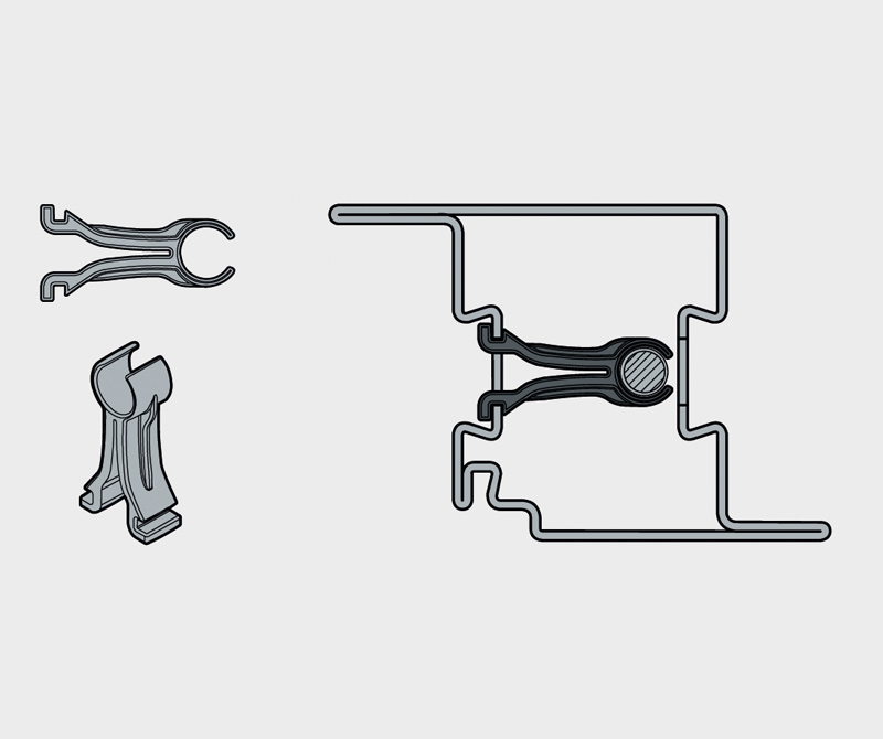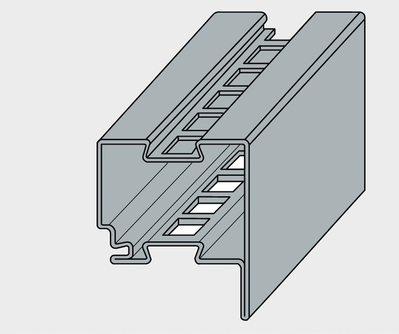 Благодарение на новата форма на профила и многофункционалния жлеб, той е съвместим с компонентите на нашата гама обкови. Правилно пробитите отвори в профила улесняват закрепването на конструкцията и свързването ѝ с други елементи в рамковата конструкция.