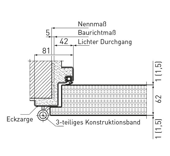 - Крило за врата Premio с двукомпонентна обхватна каса 2140B за стандартни дебелини на стените 100/125/150 мм (за специални дебелини на стените 100-300 мм, моля, обърнете внимание на по-дългия срок за доставка)