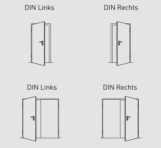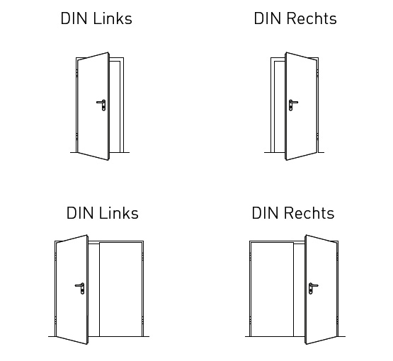 Два осигурителни щифта на крило. Брава с черен комплект обли дръжки (монтирана на бравата). Патрон за монтаж на място за вътрешни врати (дължина 85 мм, 35/50 мм). За външни врати - под формата на глух патрон, включен в обхвата на доставката. 1-крила врата, стандартно оборудвана с вътрешна армировка за горен автомат от страната на пантите. Размер > 1250 x 2250 mm (размер на светлия проход >1166 x 2208 mm), както и за всички височини на вратите над 2500 mm (размер на светлия проход > 2458 mm) в стандартна версия с горен автомат за врати Geze TS 4000 F или dormakaba TS 89 F, който се предлага на същата цена и с автомат за врати с плъзгаща се шина Novoferm NFGS 55, по заявка).