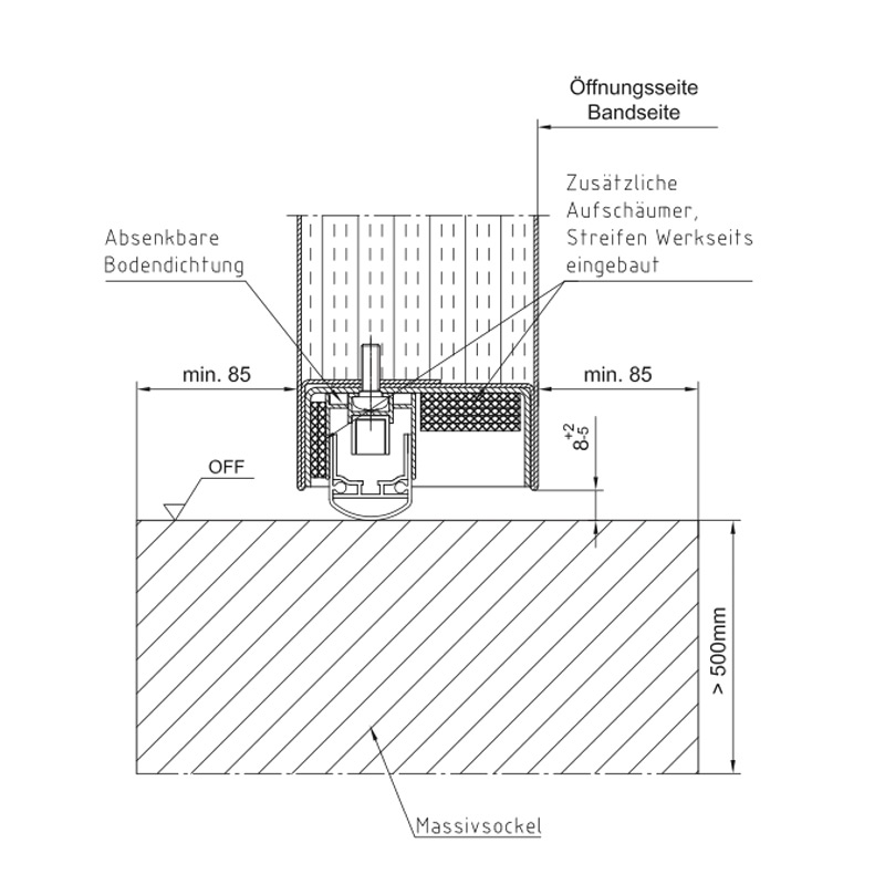 Стандартно A в една равнина с пода, по избор B1, B2, B3, BE-2 с четиристранна обграждаща каса или C2 с долен ограничител и уплътнение или уплътнителни прагове RS1 със спускащо се подово уплътнение (предлага се и като RS1V със забавено спускане), двоен праг RS1 или праг с акустично уплътнение RS2.