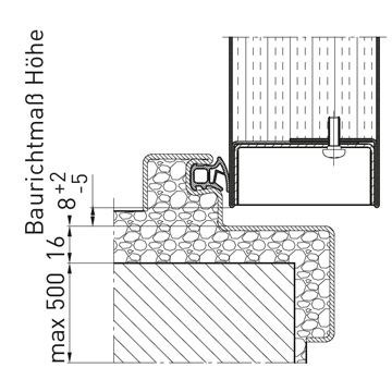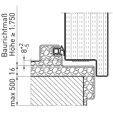 Стандартно ниво на пода A, по избор B 1, B 2, B 3, BE-2 с 4-странна непрекъсната рамка, или C 2 с долен фалц, или RS 1 уплътнителни прагове с падащо подово уплътнение, (също като RS1V със забавено падащо подово уплътнение), или RS 1 двоен праг.
