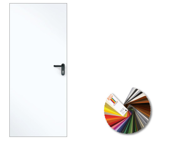Крилото и касата на вратата са поцинковани и грундирани (прахово боядисани) по RAL 9016. По желание крилото и касата на вратата се предлагат и с прахово покритие в цвят по RAL по ваш избор.