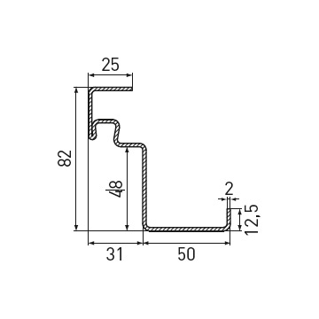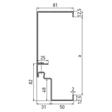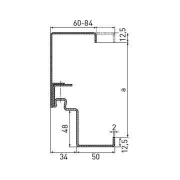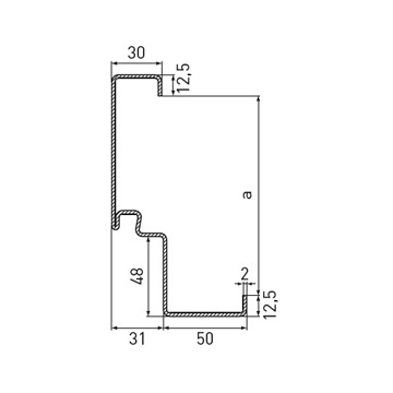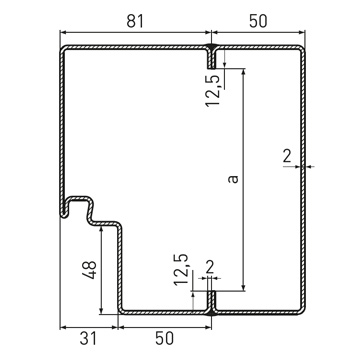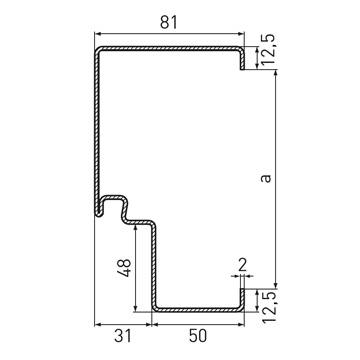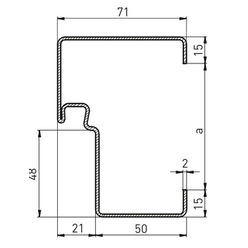 Стандартна ъглова каса с тристранен уплътнителен профил от EPDM без удължение за вкопаване в пода, дебелина на касата 2.0 mm, широчина на лицевата страна 50 mm, опция: обхватна каса на вратата, двукомпонентен обхватен профил на касата 2140B, насрещна и блок каса за свързване към стената или блок каса за монтаж пред стената.