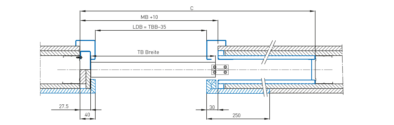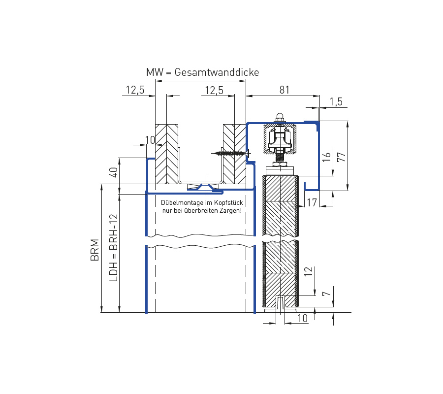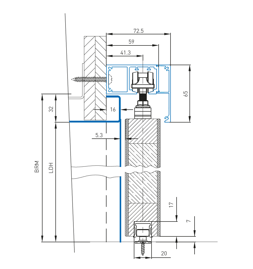 Kомплектът ролки винаги включва двустранно демпфериране до тегло на крилото на вратата 80 kg за ширина на крилото на вратата от 580 mm. Позицията за паркиране на вратата се постига чрез просто позициониране на активиращите елементи в ходовата част. Профилът е предварително пробит на разстояние 250 mm.