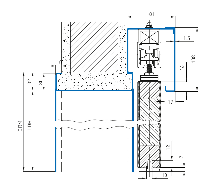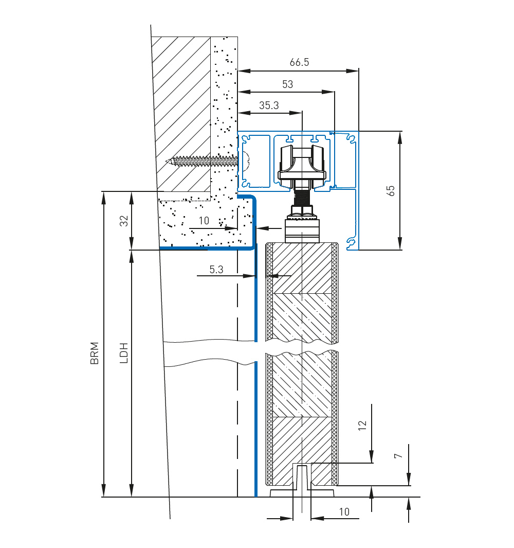 - фабрично подготвотвен отвор за закрепване към стената на кутията за ходовата релса