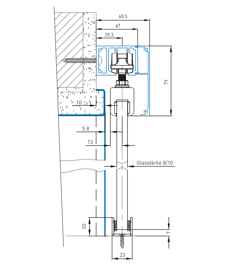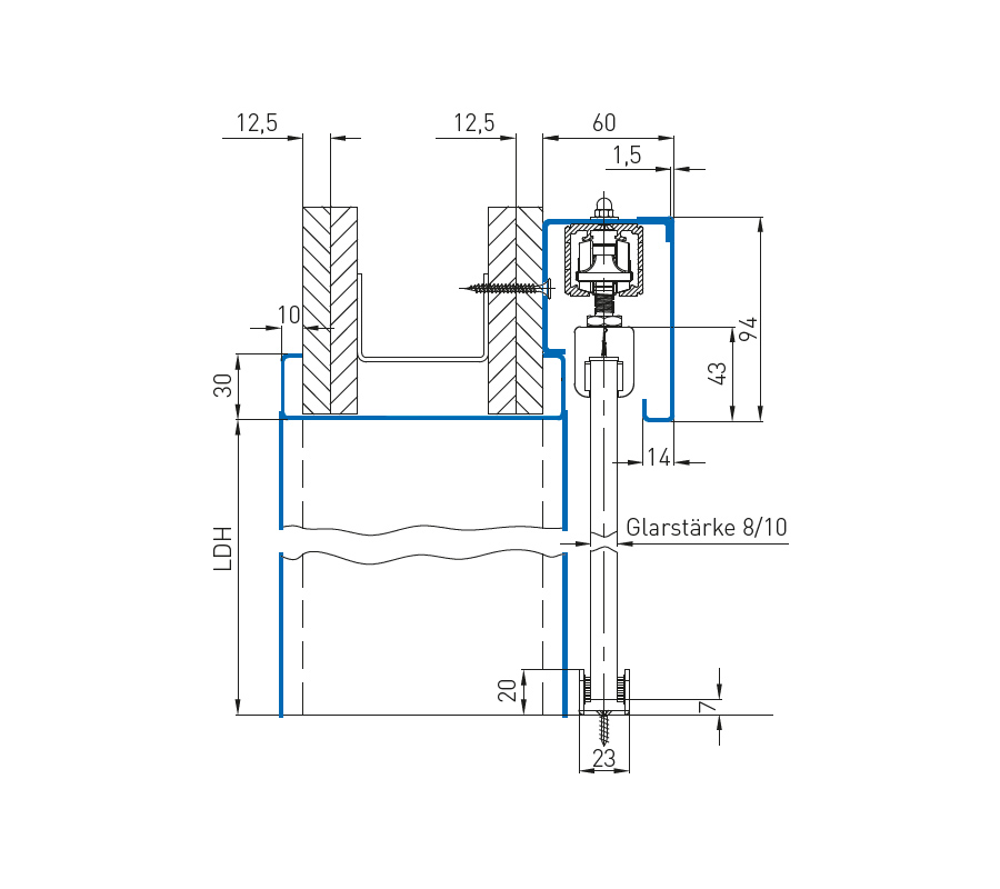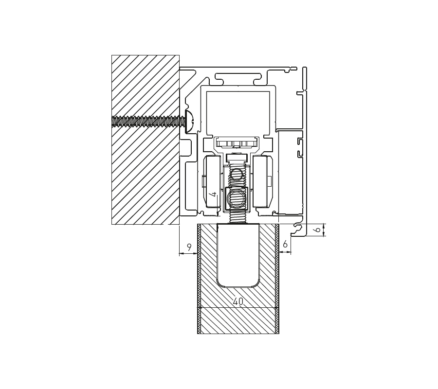 - вкл. пълен комплект монтажни аксесоари за монтиране на крилото на вратата върху релсата, напр. монтажни елементи със скоби за стъклените врати
