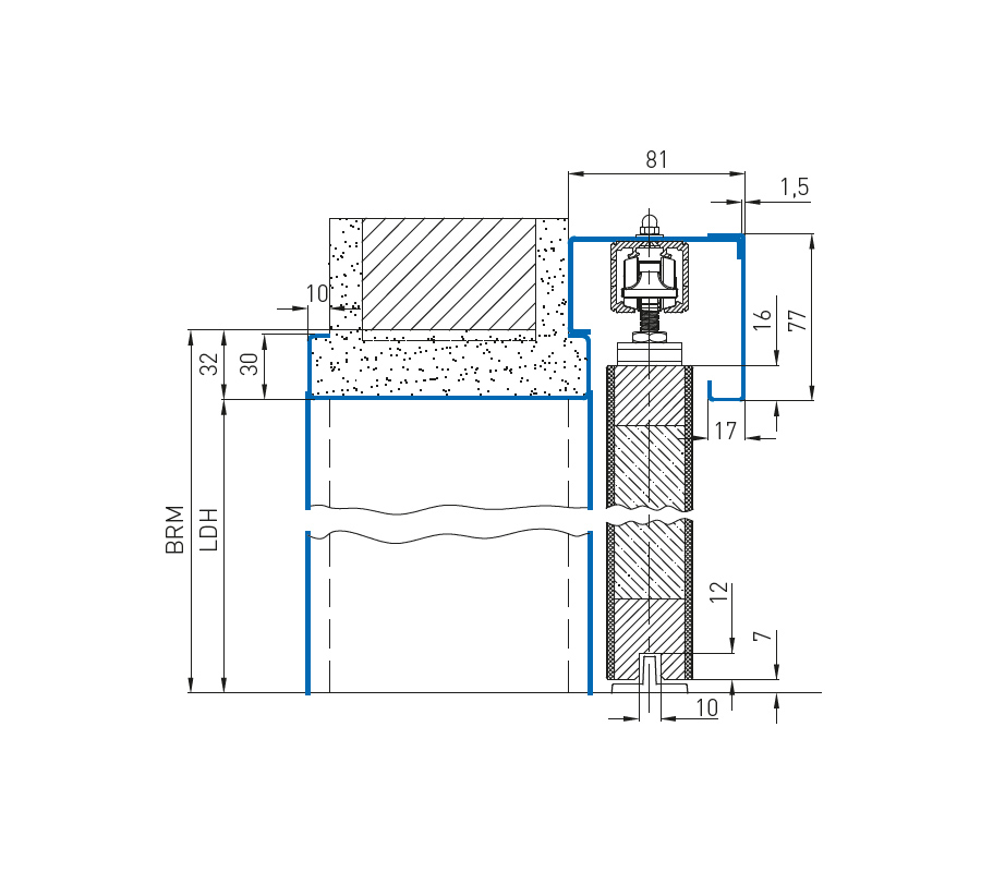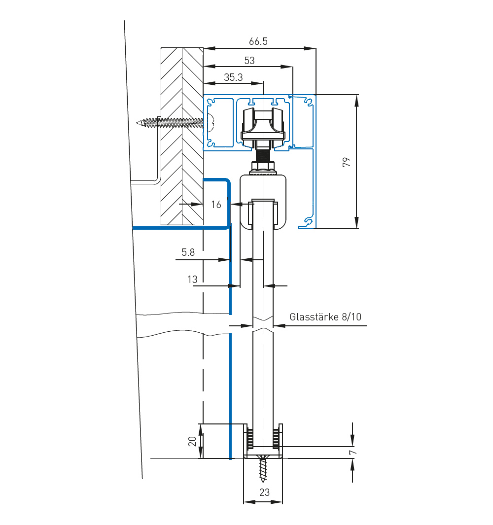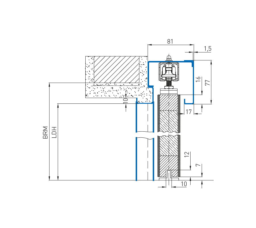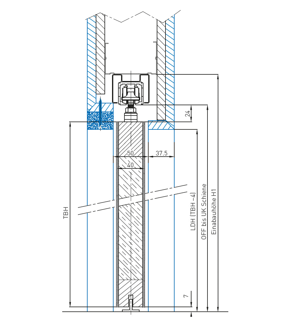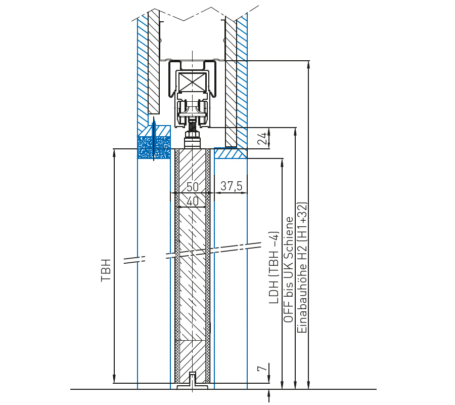 Изравняване на височината с помощта на допълнителни регулируеми крачета. Дебелини на крилото на вратата за дървени врати до 40 мм, за стъклени врати по избор 8 мм или 10 мм.