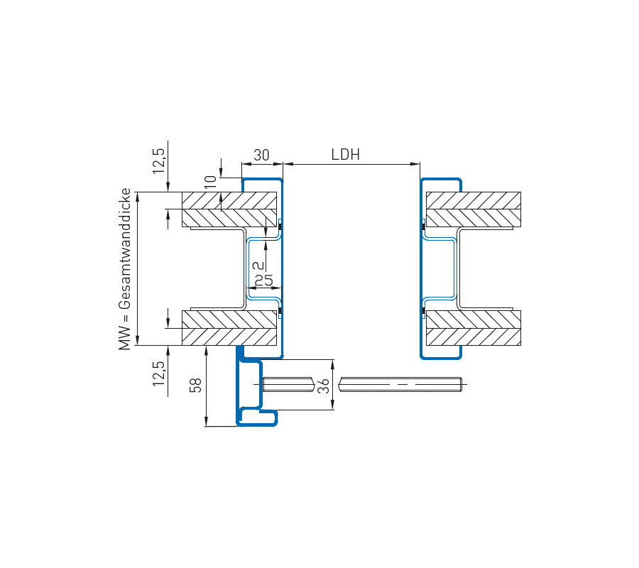 1 x релсов профил вкл. куха камера за отвора в стената