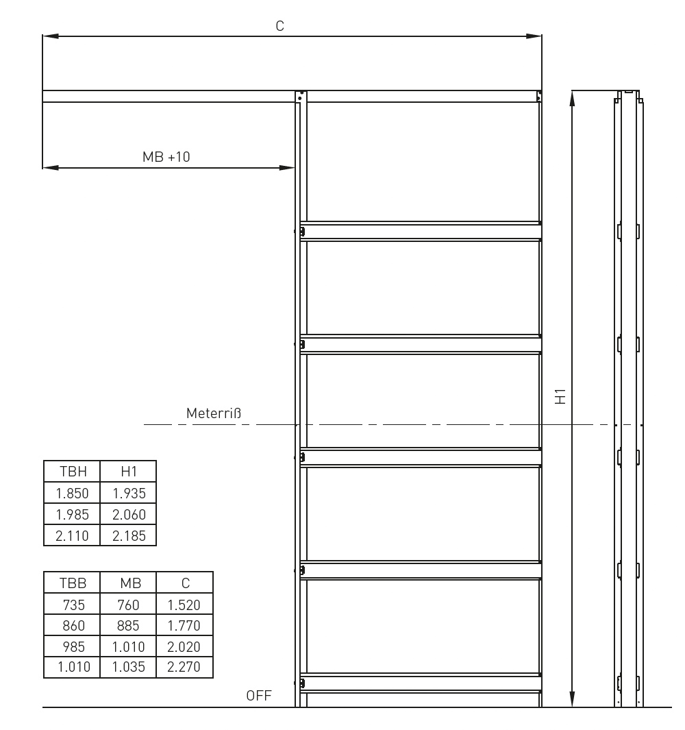 Ширина 610 / 735 / 860 / 985 / 1 110 / 1 235 мм