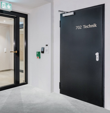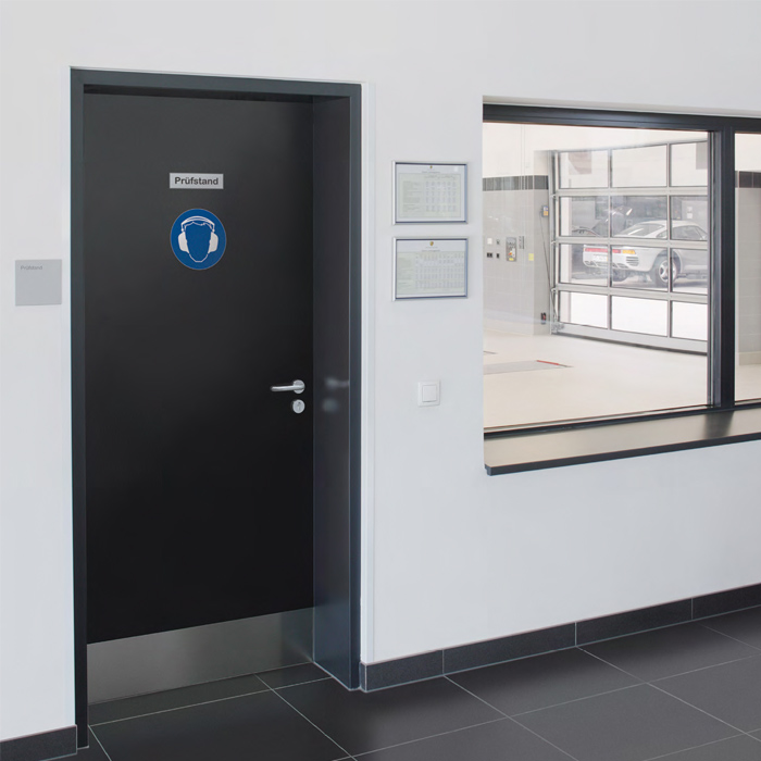 Кухините на вратата са запълнени със специална, високоефективна звукоизолация. Със здравата си метална конструкция с дебел фалц и стоманена ламарина с дебелина 1,0 мм (опция за 1,5 мм) вратата е достатъчно масивна, за да издържи дори на високи нива на звуково натоварване. Стандартното спускащо се специално подово уплътнение и висококачествените уплътнения на касата и фалца допълват цялостната картина.
