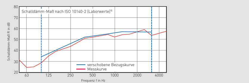 | Стойност на звукоизолацията достигаща до RW = 53 dB (лабораторна стойност) |