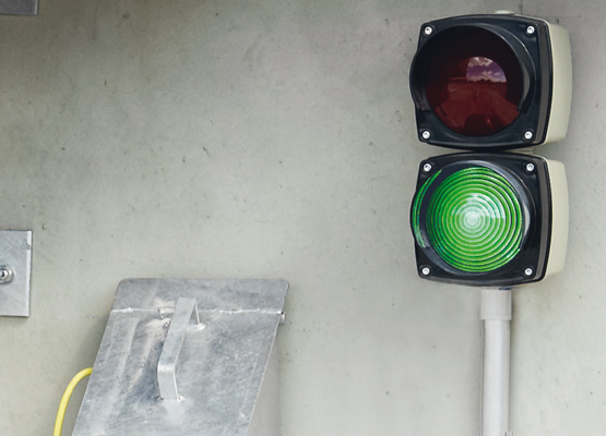 Der LKW ist noch weit von der Verladestelle entfernt: Die Ampel leuchtet grün. - SCHRITT