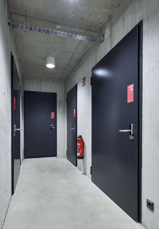 Затова в мюнхенския Urban Colab от сутерена до ниво 4 бяха използвани пожарозащитни врати T30/ EI2 30 и T90/ EI2 90, както и многофункционални врати от листова стомана от серията NovoPorta Premio на Novoferm.