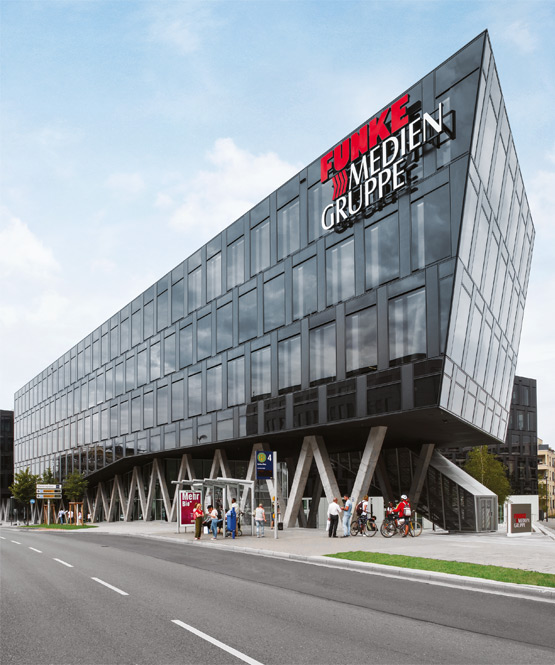 Лъскав черен сграден комплекс с отделна медийна кула на върха и най-голямата "информационна стена" в Германия: това е новата централа на Funke в центъра на Есен. Дизайнерската концепция на сградния комплекс се основава на цветовете черно, сребристо и бяло и напомня за процеса на печатане, а оттам и за произхода на медийната група.