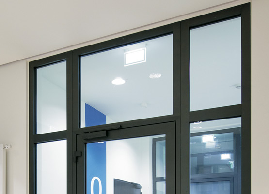 Височините и широчините на коридорите в сградата са различни. Съответстващите горни и странични панели в необходимия клас на защита създават хармоничен цялостен вид. В рамковата конструкция от алуминиеви профили могат да се поставят стъкла, както и алуминиеви панелни пълнежи, прахово боядисани в цвета на рамката.
