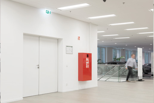 Това изискване се отнасяше и за интегрирането на цялостна концепция за противопожарна защита. Ето защо в новата централа на компанията бяха монтирани противопожарни врати и плъзгащи се противопожарни врати от Novoferm, които представляват най-съвременните постижения в областта на технологиите и дизайна.