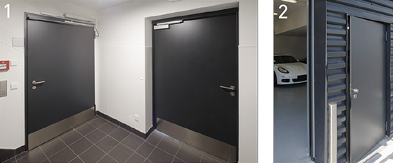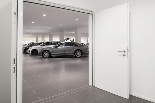 Здрави и солидно оборудвани, тези стоманени врати са подходящи не само за използване в тежки ежедневни условия в работилниците, но - както тук, в Audi - със своя уютен дебел фалц и атрактивен дизайн на повърхността, те са еднакво подходящи за офис и административни помещения. Голямото разнообразие от типове остъкляване или специални версии със специфично боядисване или фолиране позволяват дори индивидуален дизайн на вратите.