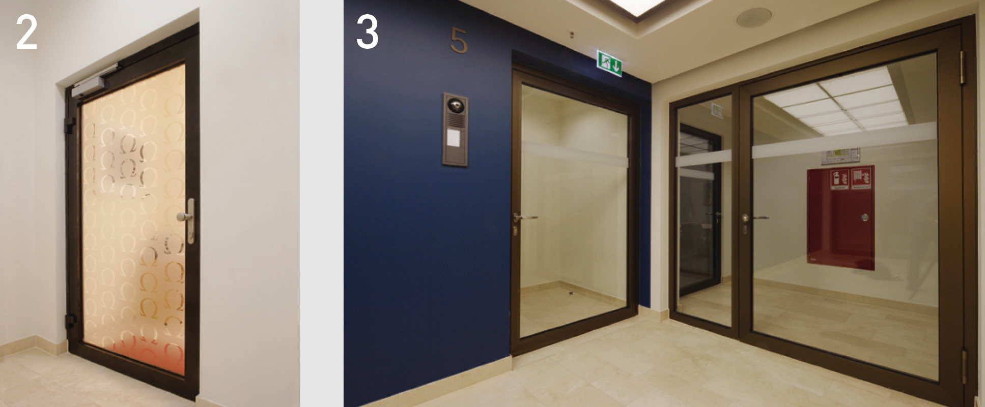 Поради тази причина противопожарните врати в тези зони са оборудвани с устройства за задържане на отварянето, за да се поддържат отворени проходи. В случай на аларма/опасност вратите се затварят автоматично, като системата за противопожарна защита може да затваря отделните врати поотделно или всички едновременно, в зависимост от сигнала за опасност. С прецизното реализиране на понякога много специфичните изисквания на архитектурната концепция, Novoferm демонстрира възможностите за проектиране, които собствениците на сгради имат днес, дори за големи и престижни сгради, въпреки строгите стандарти за противопожарна защита.